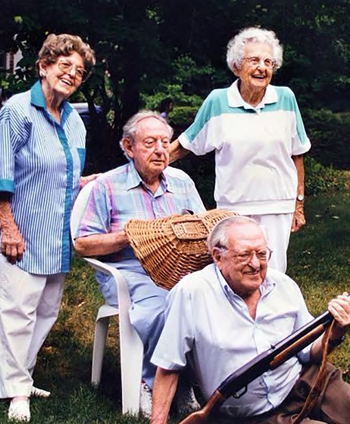 Kahn siblings recreating a family photo in 1999. The siblings, Helen, Peter, Lee, (left to right) and Irving (front) were the oldest living quartet. Helen and Irving lived past 109, while Lee and Peter lived to 101 and 103