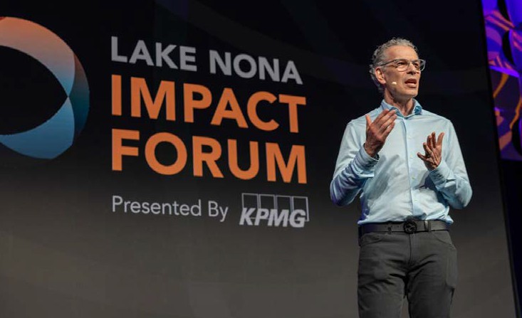 Dr. David Feinberg presenting at the Lake Nona Impact Forum in 2023. Dr. Feinberg is a thought leader in health care, having previously led Google Health, Cerner as well as UCLA Health and Geisinger Health systems