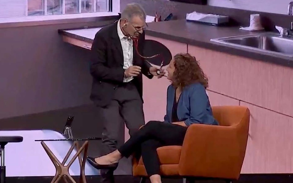 Dr. Feinberg demonstrates the use of the Oracle Clinical Digital Assistant on stage at the Oracle Health Conference in 2023
