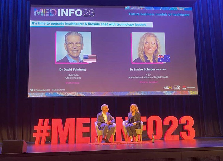 Dr. David Feinberg at the MedInfo 2023 event held in July 2023 in Australia, which brings together leaders in digital health. Dr. Feinberg thinks that tech can be a great accelerant of change, but his “true north” is “people caring for people, loving your community and developing tools to facilitate understanding and change”