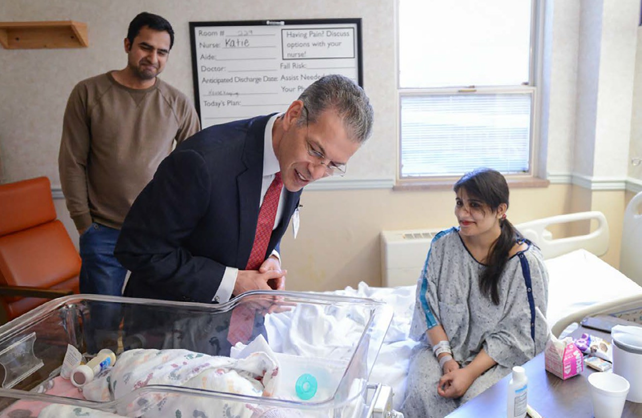 Dr. David Feinberg, then CEO of Geisinger Health system, visiting a new mom at the hospital. Dr. Feinberg believes that we need to keep human connection at the center of every interaction, especially between the patient and physician